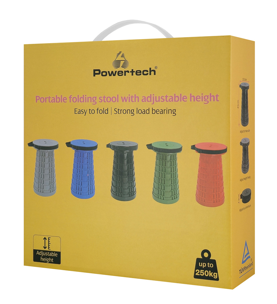 POWERTECH πτυσσόμενο καρεκλάκι HUH-0234, αντοχή έως 250kg, 25.5x45cm, μπλε