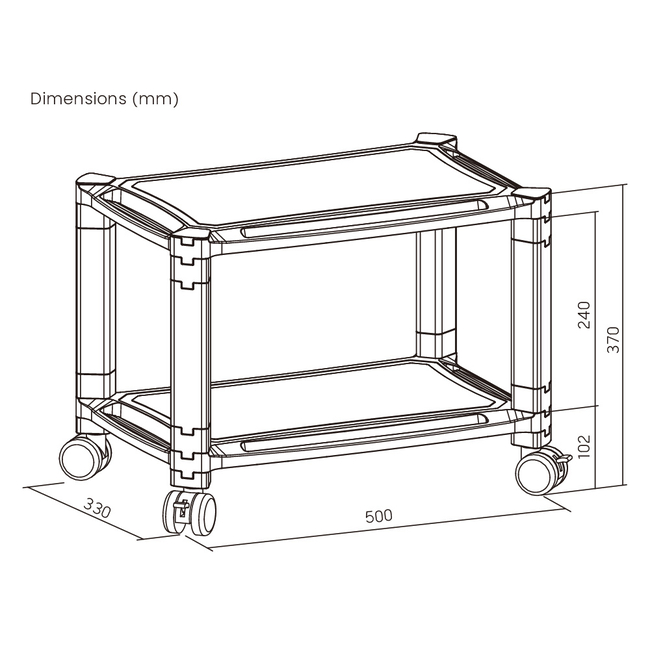 BRATECK ραφιέρα δαπέδου AMS-4L με ροδάκια, 2 ράφια, 50x33x37cm, έως 10kg, μαύρη