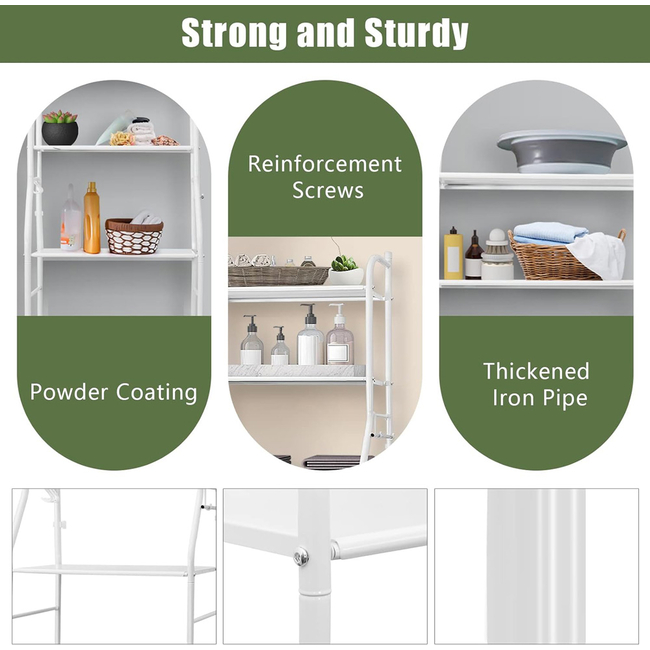 Μεταλλική ραφιέρα μπάνιου, ιδανική για την οργάνωση και την τακτοποίηση του μπάνιου. Μπορεί να τοποθετηθεί πάνω από την λεκάνη ώστε να δημιουργήσετε περισσότερο αποθηκευτικό χώρο στο μπάνιο σας, κάνοντας την ιδανική λύση για μπάνια με περιορισμένο χώρο. Διαθέτει 3 ράφια για την τοποθέτηση πολλών αντικειμένων και αντιολισθητικά ποδαράκια για ισχυρό κράτημα. Είναι εξαιρετικά ανθεκτική και σταθερή χάρη στο μεταλλικό σκελετό της και η συναρμολόγηση της γίνεται πολύ εύκολα.