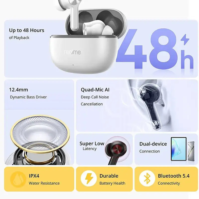 Realme Buds T200 Lite Bluetooth Handsfree Ακουστικά με Αντοχή στον Ιδρώτα και Θήκη Φόρτισης Storm Grey