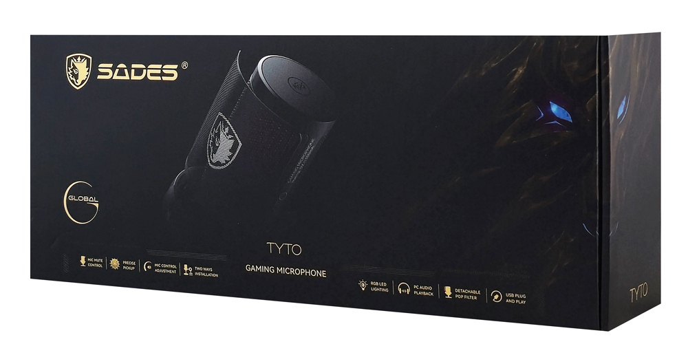 SADES gaming μικρόφωνο TYTO με βάση γραφείου & επιτραπέζια, pop φίλτρο, καρδιοειδές, USB, μαύρο