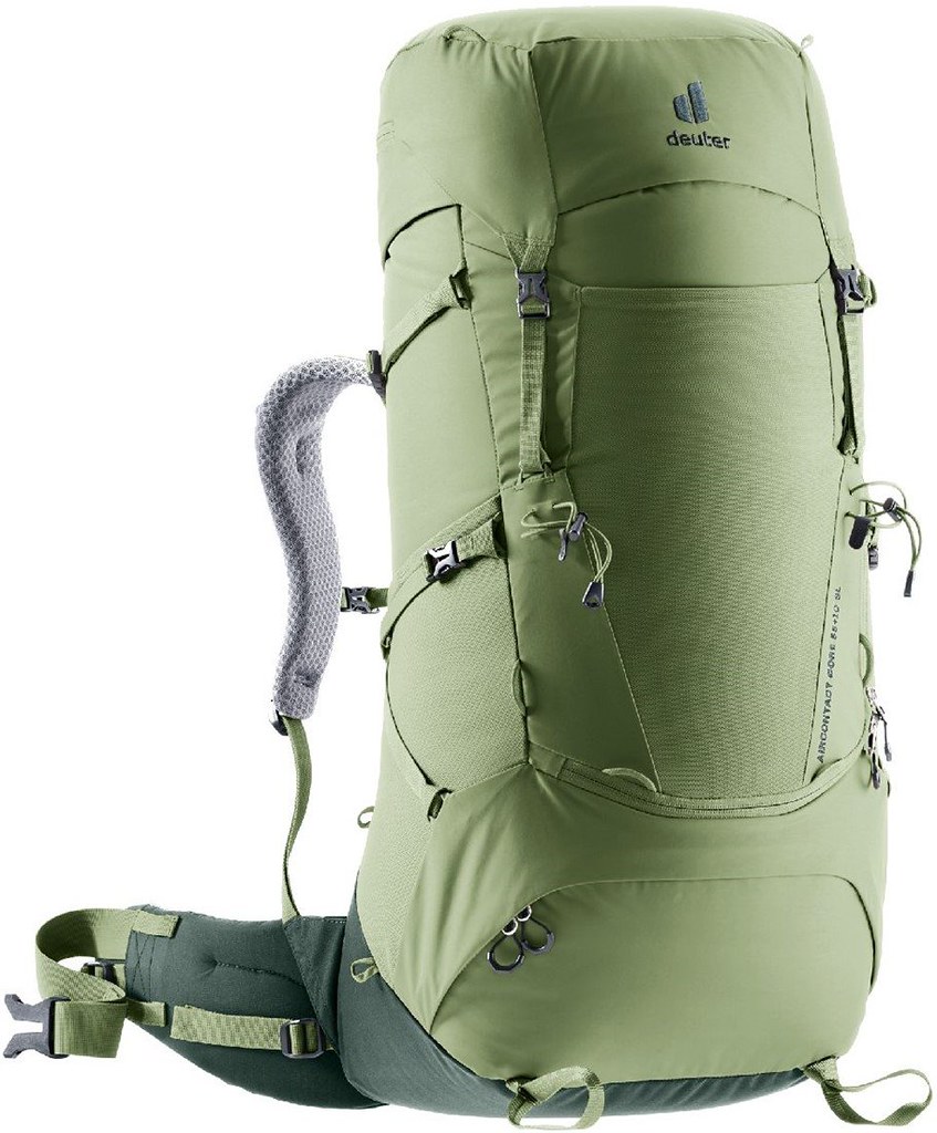 The Deuter Travel Aircontact Core 55+10 SL grove-ivy backpack is engineered specifically for female trekkers, offering performance and comfort. With a total capacity of 55 liters and an expandable 10 liters, it provides ample space for all essentials.