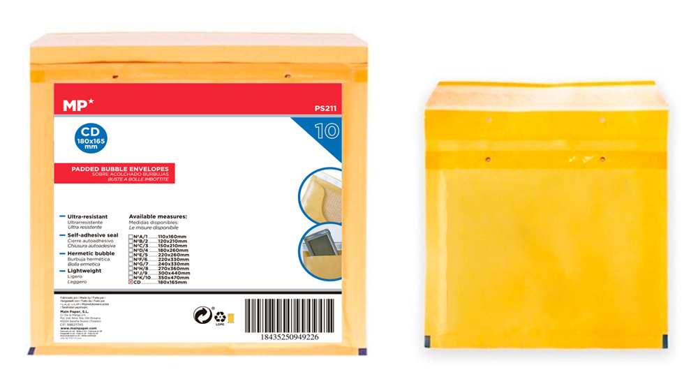 MP σετ φάκελοι με φυσαλίδες PS211, 180x165mm, καφέ, 10τμχ