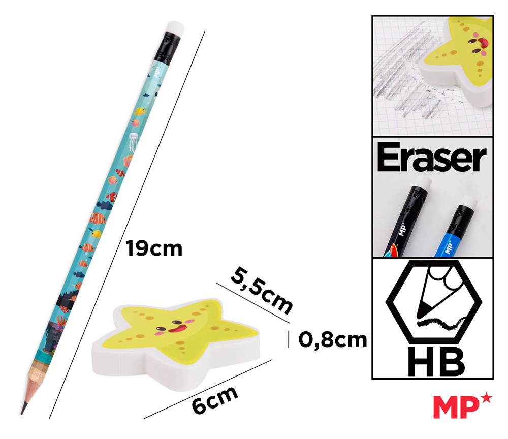 MP σετ ξύλινα μολύβια & γόμα World oceans day PPE356-05, εξάγωνα, HB, 5τμχ