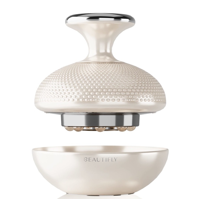 The massage head is plated with 24-carat gold, which enhances conductivity while providing antibacterial properties and improving skin elasticity.