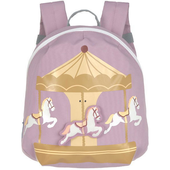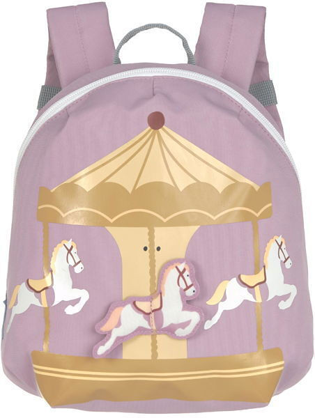 The Lassig Tiny Drivers Carousel Mini Purple school backpack is a vibrant and practical companion designed for young children. This adorable backpack is part of the Lässig brand's Tiny Drivers collection, featuring colorful vehicles and playful 3D details that make it appealing to toddlers and preschoolers.