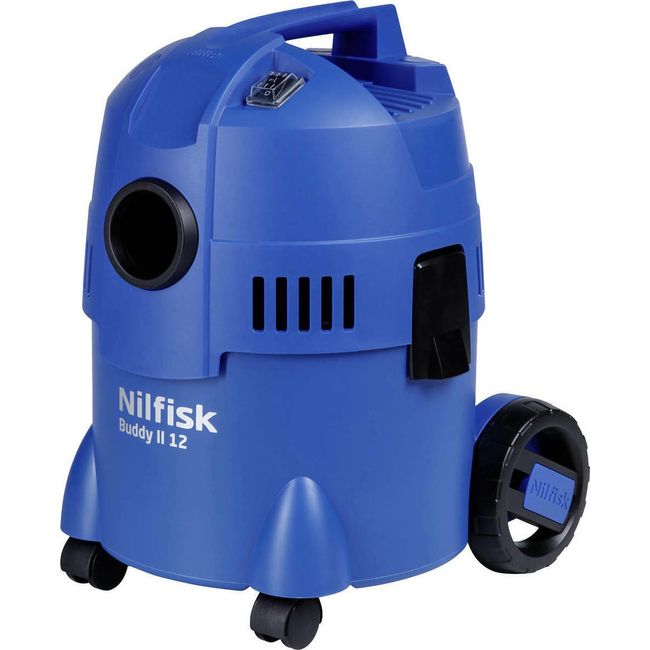 The Nilfisk Buddy II 12 EU is a versatile wet and dry vacuum cleaner, equipped with a powerful 1200 W motor that offers an impressive maximum suction power of 250 W.