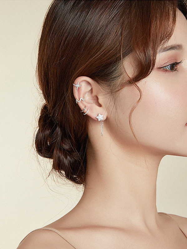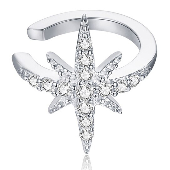 Εντυπωσιακό σκουλαρίκι cuff, το οποίο προορίζεται στο αυτί και δεν χρειάζεται τρύπα για να το φορέσετε. Είναι κατασκευασμένο από ασήμι 925 και διακοσμημένο με λευκή κυβική ζιρκόνια που προσφέρει εξαιρετική λάμψη στο κόσμημα.