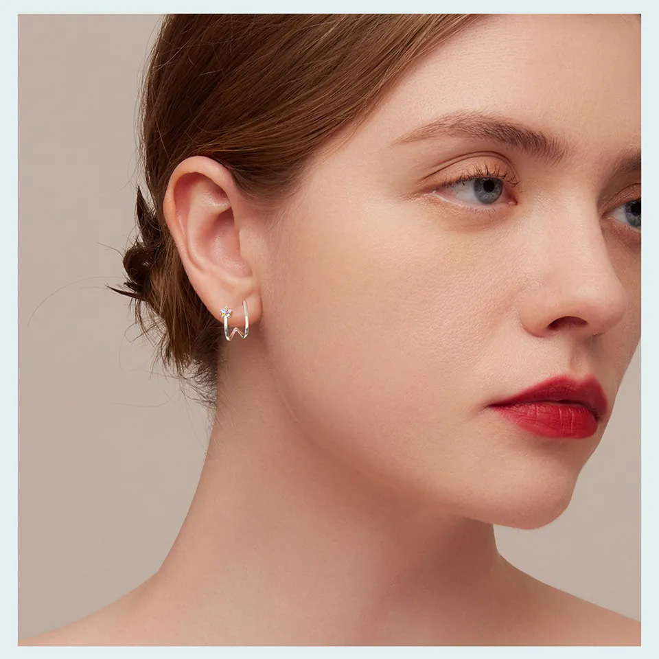 BAMOER σκουλαρίκια διπλοί κρίκοι SCE1480, κυβική ζιρκόνια, ασήμι 925