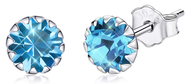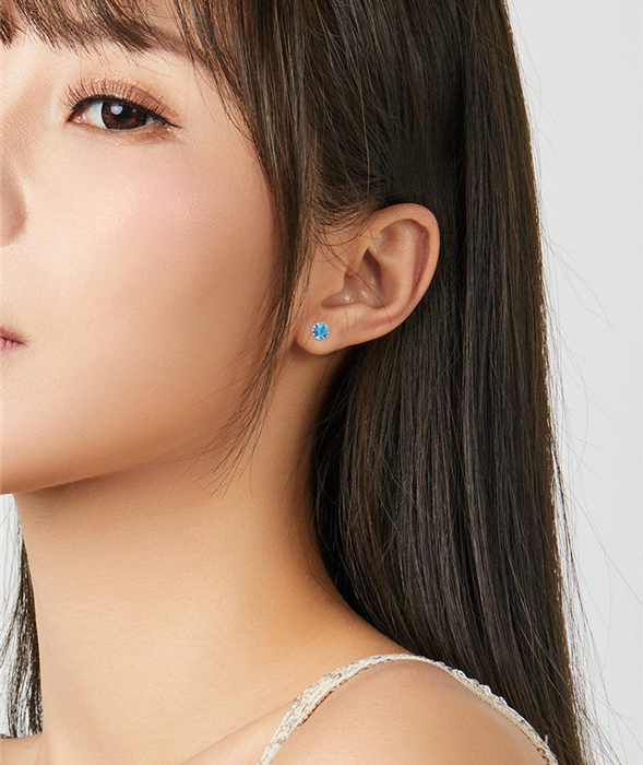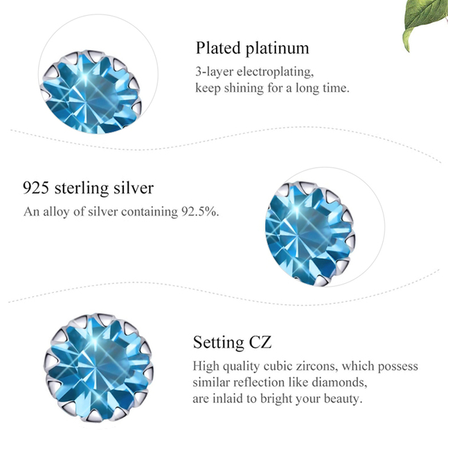 Καρφωτά σκουλαρίκια Bamoer κατασκευασμένα από ασήμι 925, επιπλατινωμένα, διακοσμημένα με αστραφτερή κυβική ζιρκόνια, μπλε χρώματος.
