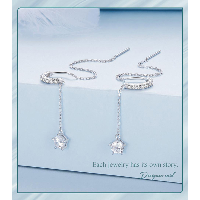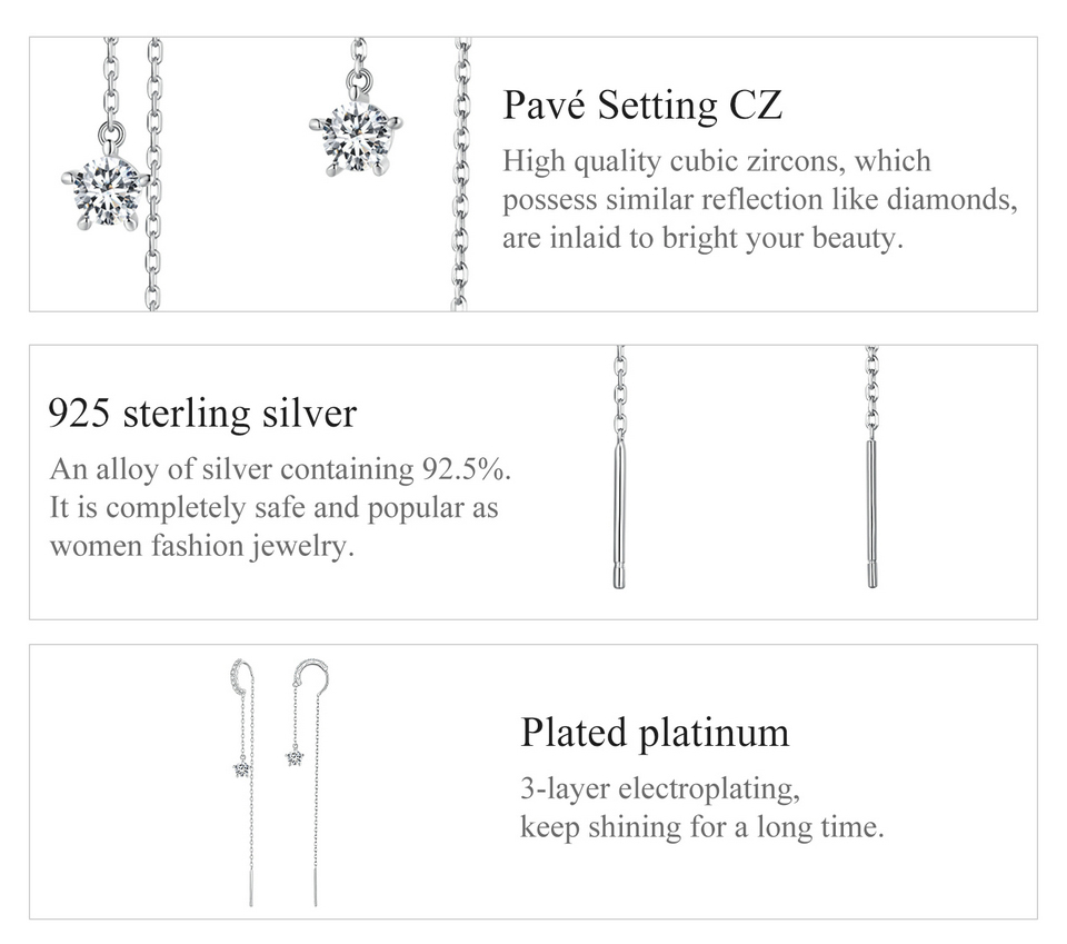 Κομψά, κρεμαστά σκουλαρίκια Bamoer κατασκευασμένα από ασήμι 925, επιπλατινωμένα, διακοσμημένα με εντυπωσιακή κυβική ζιρκόνια.