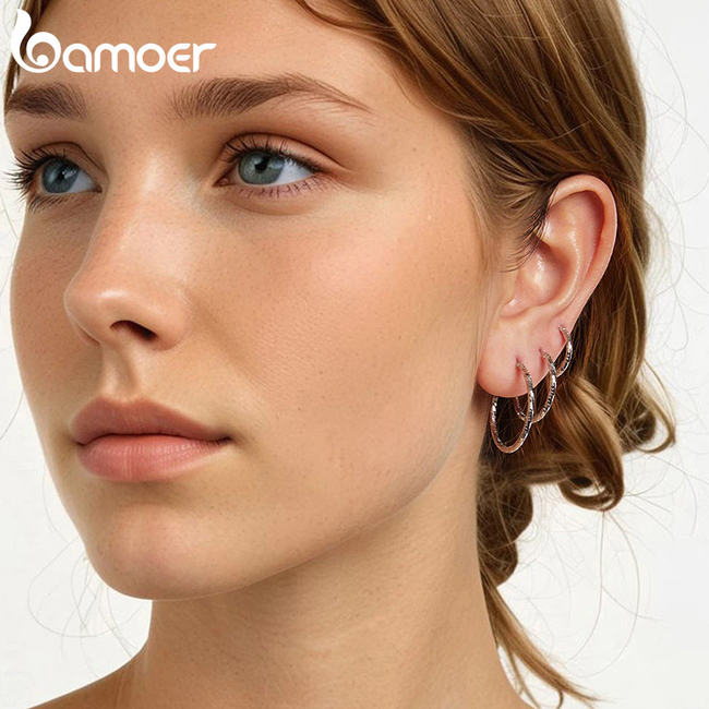 BAMOER σκουλαρίκια κρίκοι BSE1178-L, ασήμι 925, 2.6cm, ασημί