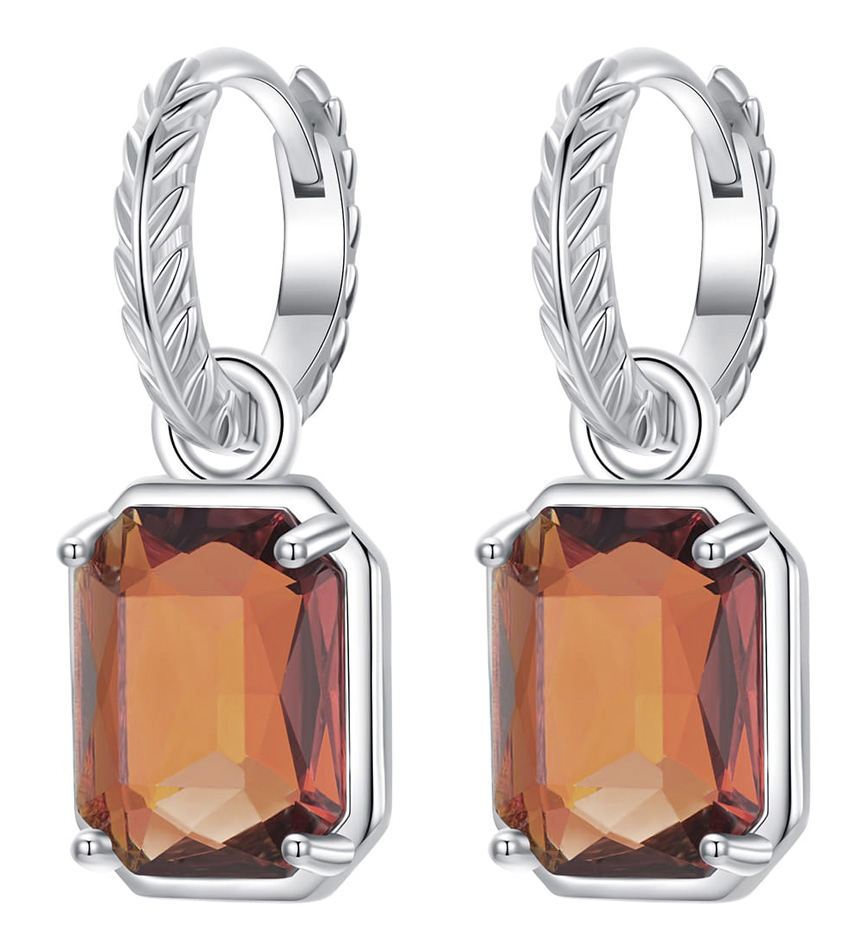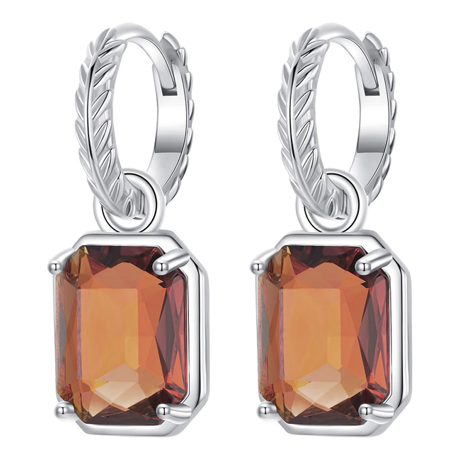 BAMOER σκουλαρίκια κρίκος BSE1081 με καφέ διάφανο κρύσταλλο, ασήμι 925, ασημί