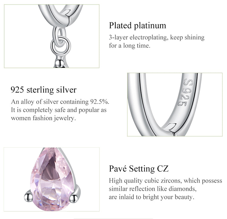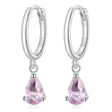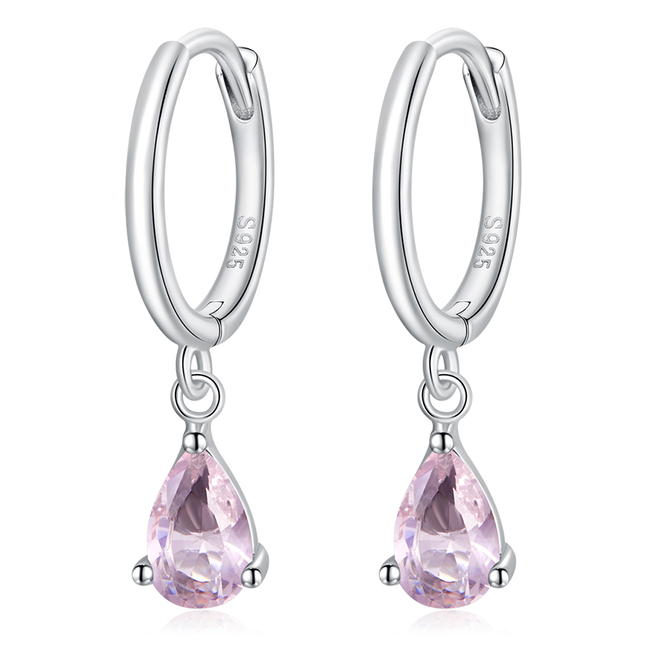 Σκουλαρίκια κρίκος Bamoer κατασκευασμένα από ασήμι 925, επιπλατινωμένα, διακοσμημένα με αστραφτερή κυβική ζιρκόνια σε σχήμα δάκρυ, ημιδιαφανούς ροζ χρώματος η οποία αντανακλά μοναδικά το φως και προσφέρει λάμψη στο κόσμημα.