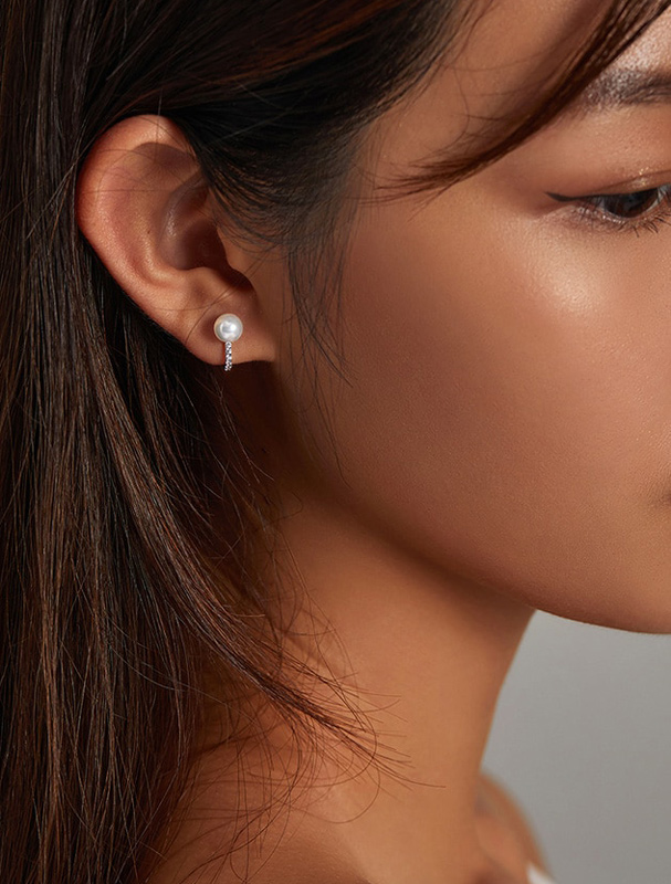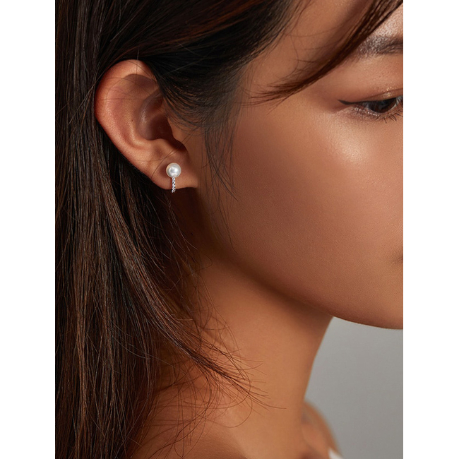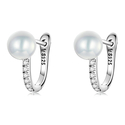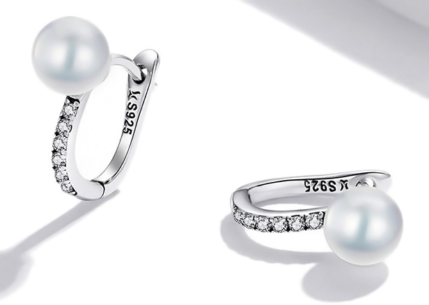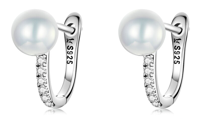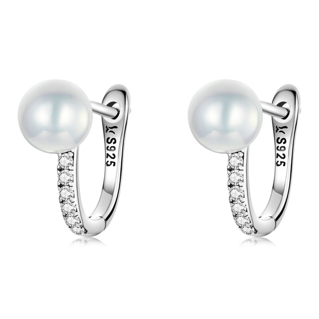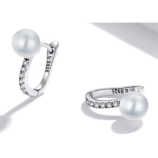 Κομψα σκουλαρίκια κρίκος Bamoer κατασκευασμένα από ασήμι 925 με επιπλατίνωμα, διακοσμημένα με αστραφτερή κυβική ζιρκόνια και πέρλα λευκού χρώματος.