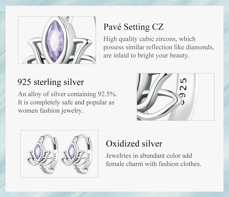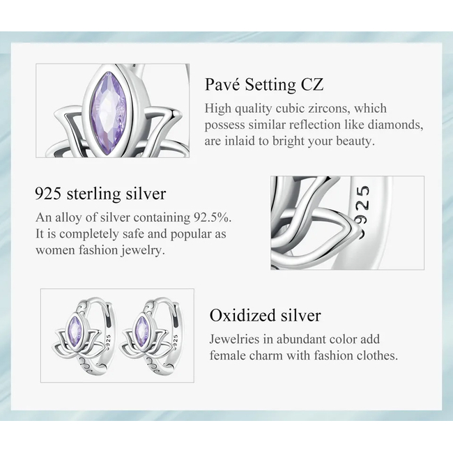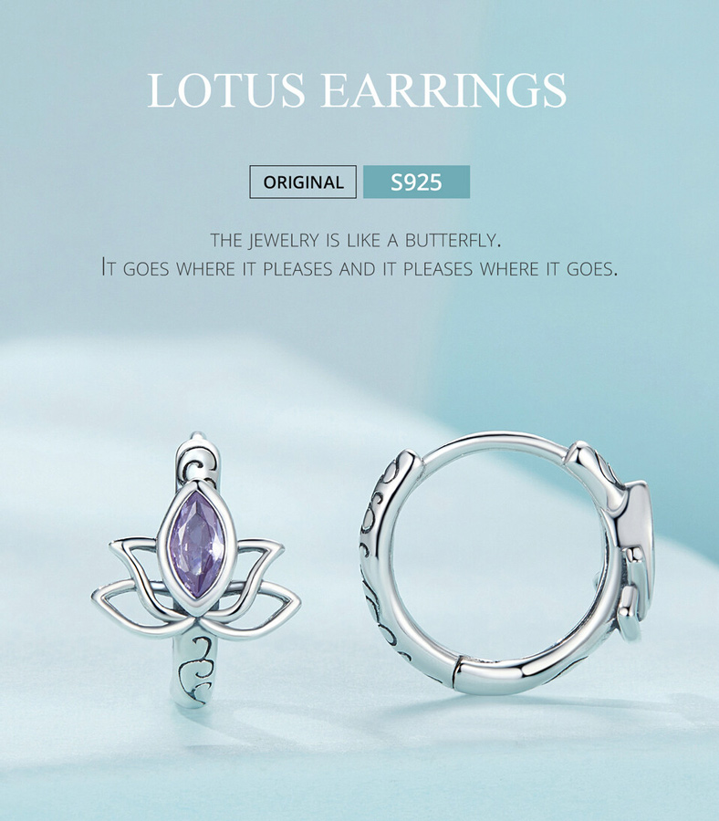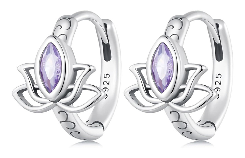 Σκουλαρίκια κρίκος με σχήμα πεταλούδας Bamoer, κατασκευασμένα από ασήμι 925, διακοσμημένα με αστραφτερή κυβική ζιρκόνια μωβ χρώματος.