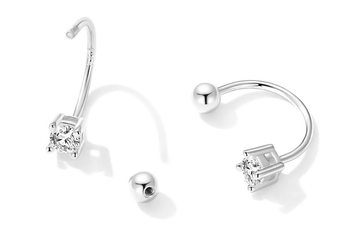Εντυπωσιακά σκουλαρίκια μπάρα Bamoer, κατασκευασμένα από ασήμι 925, επιπλατινωμένα και διακοσμημένα με αστραφτερή κυβική ζιρκόνια λευκού χρώματος. Διαθέτουν βιδωτό κούμπωμα και είναι κατάλληλα για piercing.