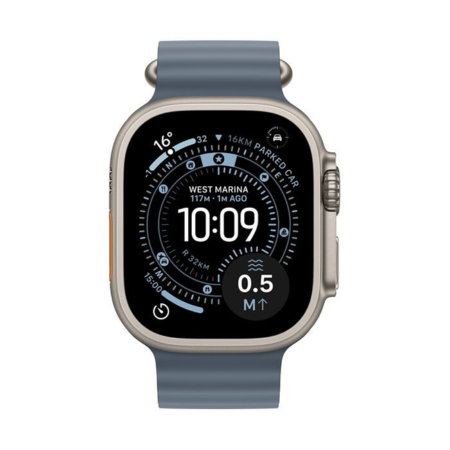 The Apple Watch Ultra 3 (2025) 5G 49mm Natural Titanium Case with Ocean Band - Anchor Blue is designed for those who embrace adventure. This rugged titanium smartwatch combines aesthetic appeal with cutting-edge technology.