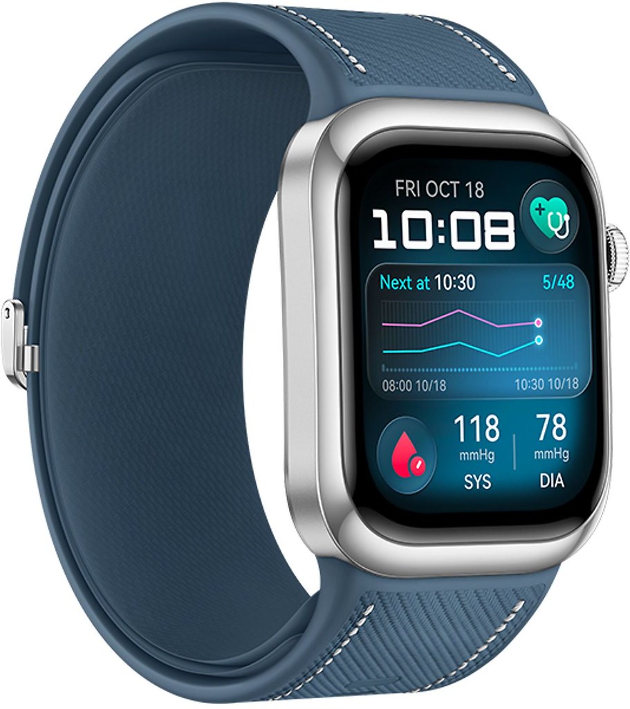 The Huawei Watch D2 Blue is a premium smartwatch tailored for health-conscious users. Its standout feature is the clinically certified blood pressure measurement, enabled by a unique 26.5 mm mechanical airbag within the strap, facilitating ambulatory blood pressure monitoring (ABPM) on demand.