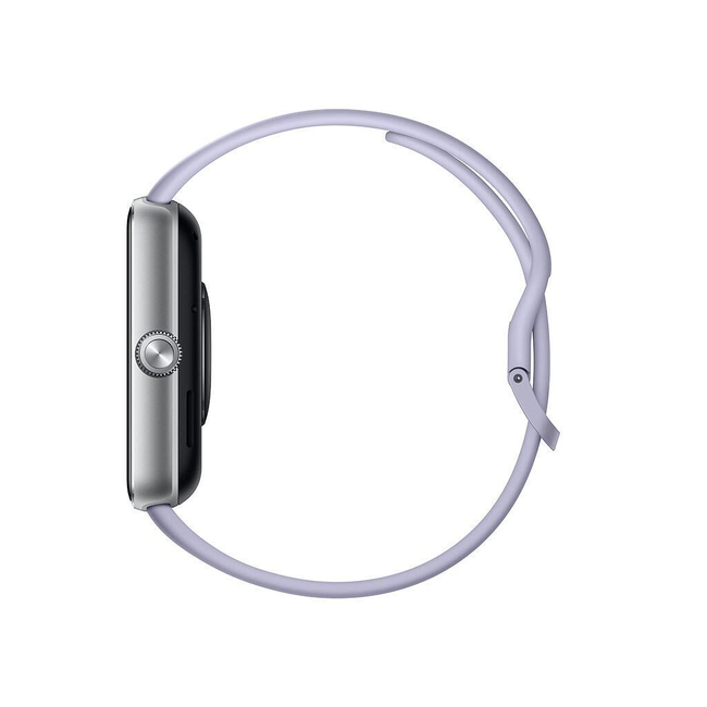 The watch has an aluminum alloy frame, which provides a premium feel and durability. It comes with a TPU strap available in three colors: Obsidian Black, Silver Gray, and Lavender Purple. The strap is adjustable, ranging from 135 to 205 mm, allowing for a comfortable fit on various wrist sizes.