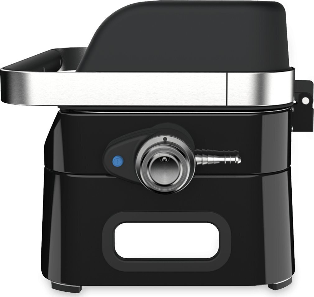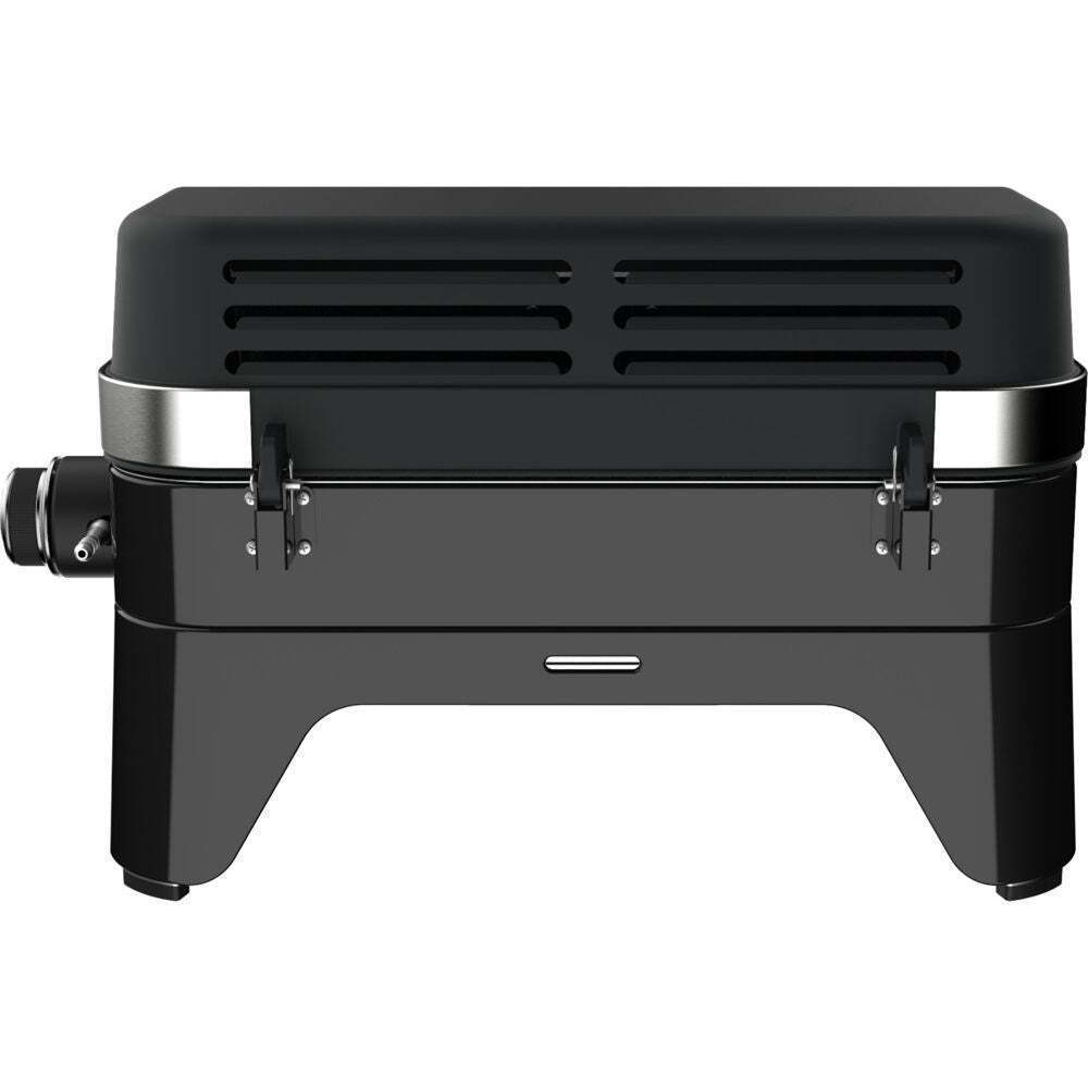 Campingaz Attitude 2go R is a compact portable gas barbecue designed for camping, balconies, and outdoor cooking on the go. It features one stainless steel burner with the Blue Flame Power System for even heat distribution, 2.4 kW power output, and 175 g/h gas consumption. The grilling area is 1200 cm² with a 48 x 26 cm cooking surface, using an enameled cast iron grate. The die-cast aluminum lid includes a built-in thermometer for precise temperature control. Practical features include piezo ignition, a removable front grease tray that is dishwasher-safe, and a pre-assembled design for quick setup. The unit is suited for 4–6 people, has a matte black finish, and is compatible with Campingaz R904, R907, and CV470 Plus cylinders. Approximate product weight is 13 kg.