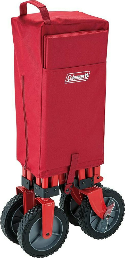 The Coleman Handcart with Wheel Brake 85 kg is a durable foldable hand cart / wagon designed for transporting camping equipment and other loads. It features a maximum load capacity of 85 kg, a steel frame, polyester fabric body, and plastic wheels with a wheel diameter of 200 mm. A foot-operated wheel brake helps prevent rolling and improves control, while D-rings and an included elastic band with hooks help secure cargo. The cart is ready assembled and comes with a storage case for compact storage and easy portability. It is suitable for carrying camping gear, coolers, sleeping bags, tents, and other outdoor equipment. Colour: red. Brand: Coleman. Model number / EAN: 3138522113247. Manufacturer number (MPN): 2000035214. Product dimensions: 1060 mm length, 530 mm width, 1000 mm height. Product weight: 11 kg.