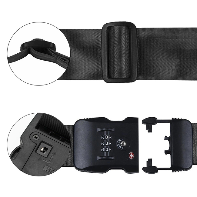 HOME USE ιμάντας βαλίτσας HUH-0245 με λουκέτο συνδυασμού TSA, ρυθμιζόμενος, 2m, μαύρος