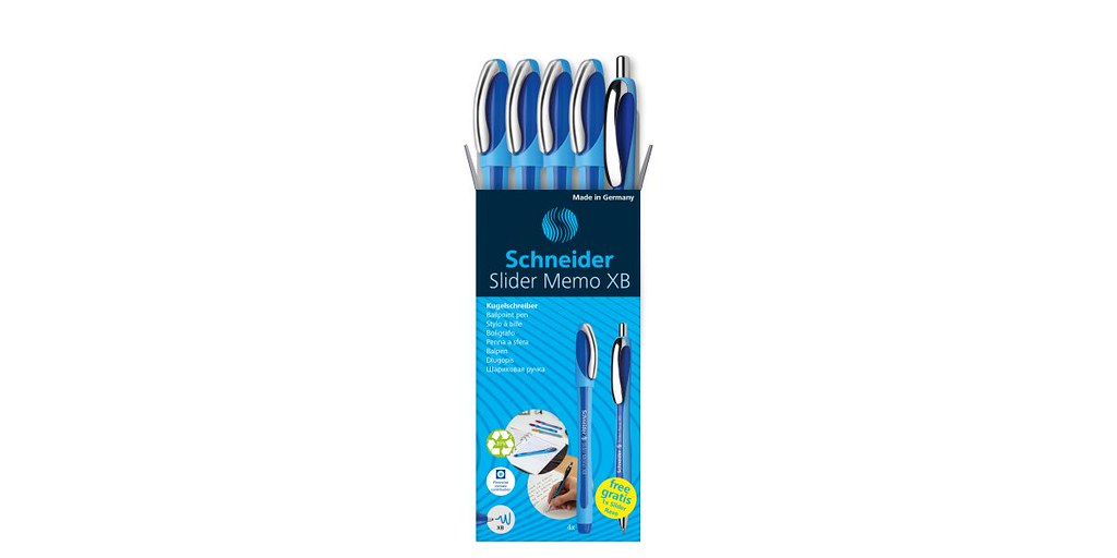 - 4 Schneider Slider Memo XB Ballpoint Pens