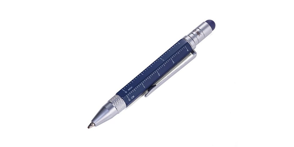 One of the key features of this pen is its versatility. It serves as a ballpoint pen with black ink, comes with two refills, and even includes a built-in capacitive stylus for touchscreen devices. Additionally, it features mini slotted and Phillips head screwdrivers and a 5-centimeter ruler.