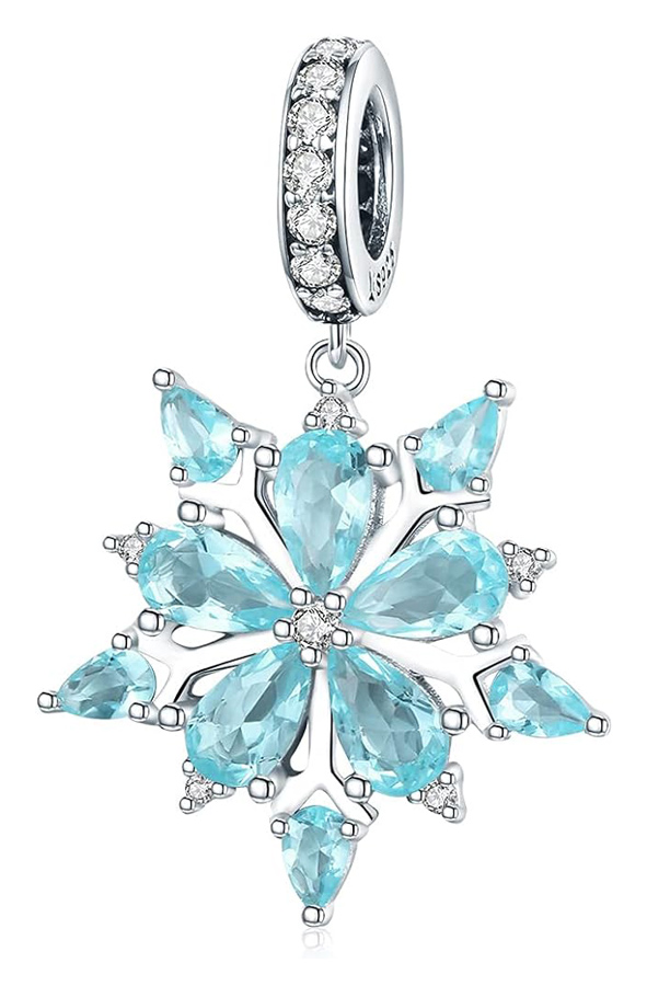 Υπέροχο charm τύπου Pandora για βραχιόλι/κολιέ της Bamoer, κατασκευασμένο από ασήμι 925, διακοσμημένο με διάφανο κρύσταλο μπλε χρώματος και αστραφτερή κυβική ζιρκόνια λευκού χρώματος.
