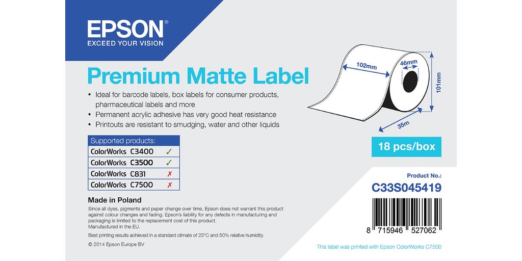 - Product Name: Epson Premium Matte Label – Continuous Roll