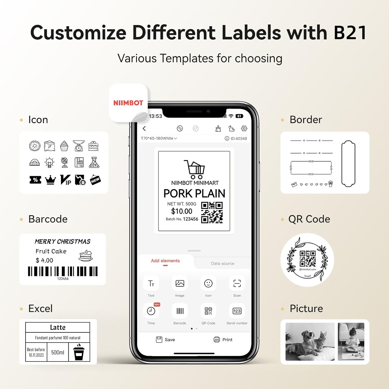 - Customization Options: Use the NIIMBOT app for personalized labels.