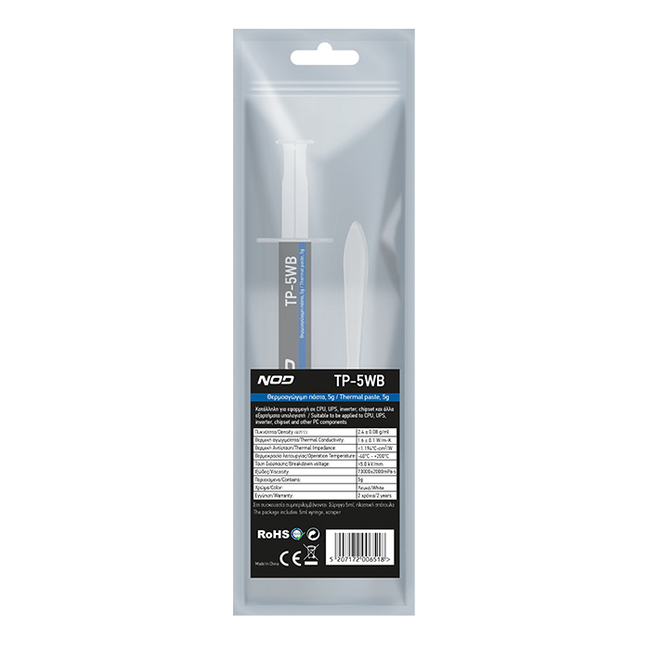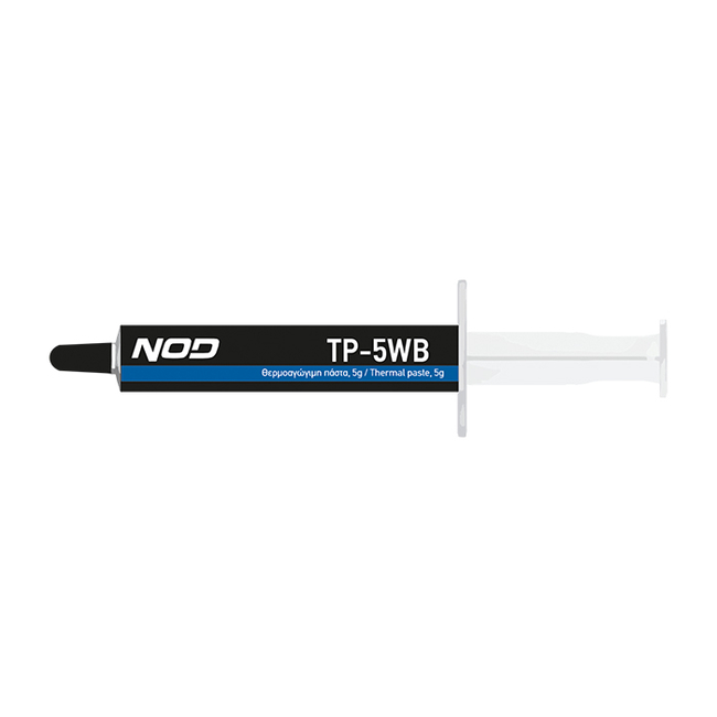 The NOD TP-5WB Thermal Paste is a high-quality thermal interface material designed to enhance heat dissipation between electronic components and their cooling systems. This paste is particularly suitable for use in CPUs, GPUs, and other heat-generating components. It is formulated to provide excellent thermal conductivity and low thermal impedance, ensuring efficient heat transfer and maintaining optimal component temperatures.