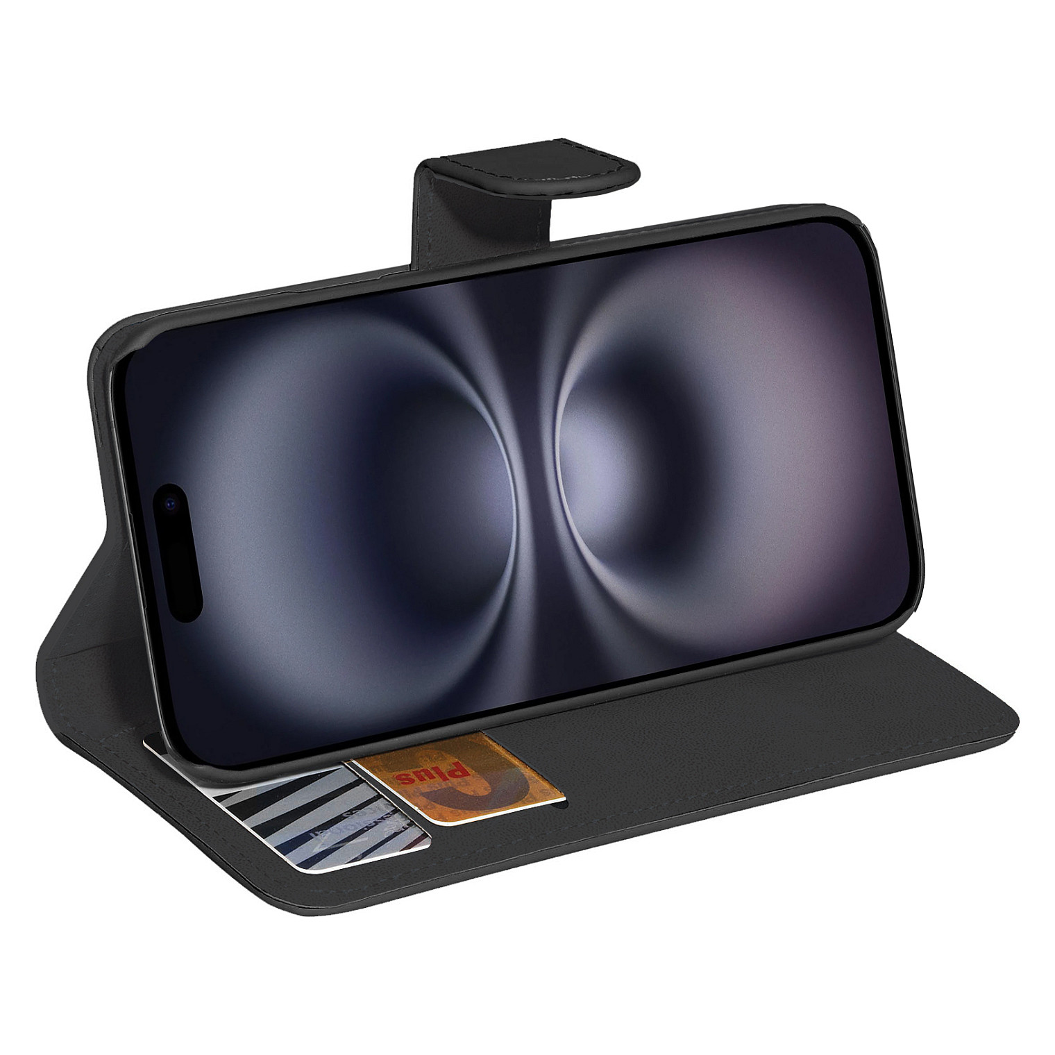 The PEDEA Book Cover Classic for Apple iPhone 16 Plus (black) is a meticulously designed protection solution for your device. Crafted from soft TPU (thermoplastic polyurethane) plastic, this case features a magnetic closure and provides an elegant, yet protective cover for your smartphone.