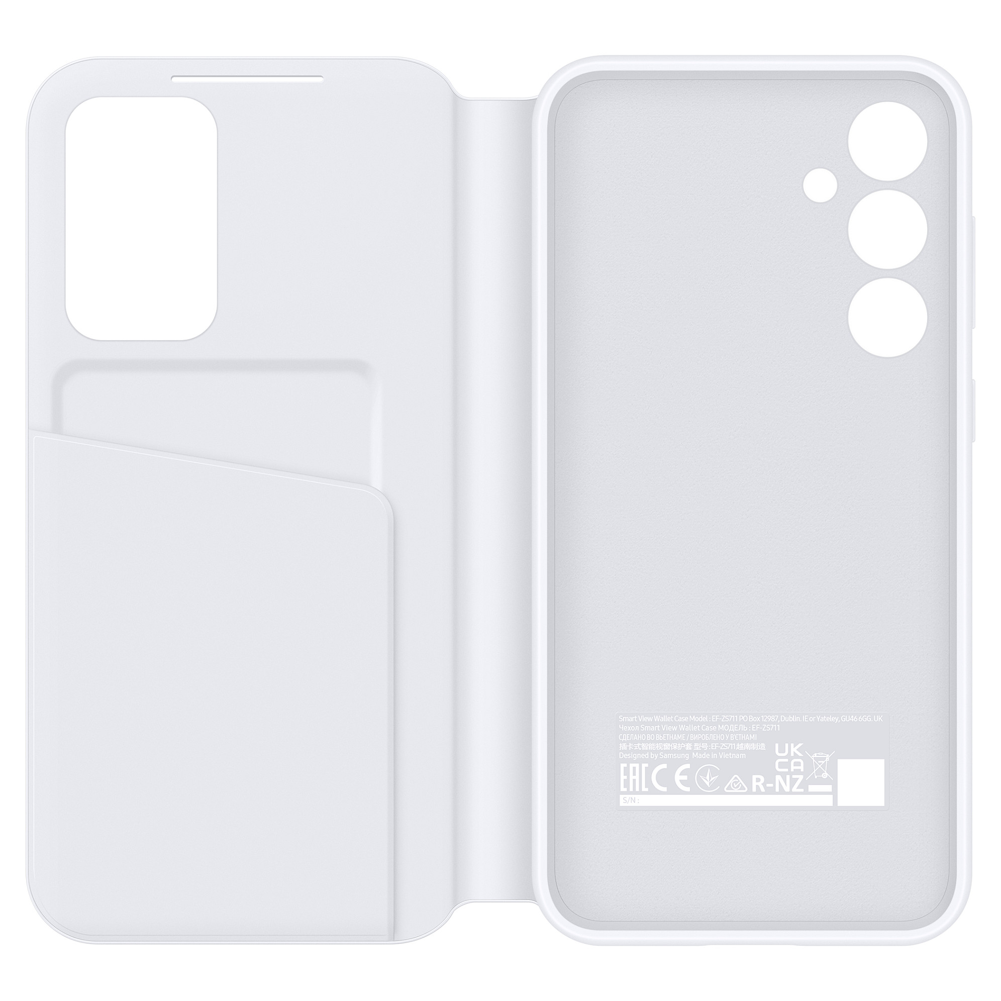 - Packaging contents: Includes the Smart View Wallet Case and an informative leaflet.