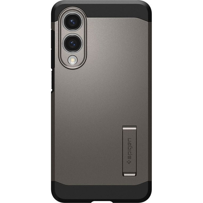 - Design Elements: Features a revamped slim profile with a matte gunmetal finish, an integrated kickstand for hands-free viewing, and raised edges around the screen and camera for added scratch protection.