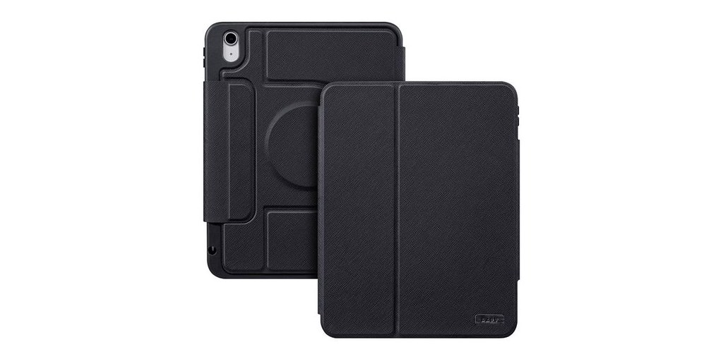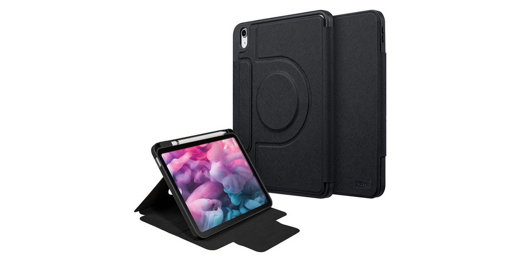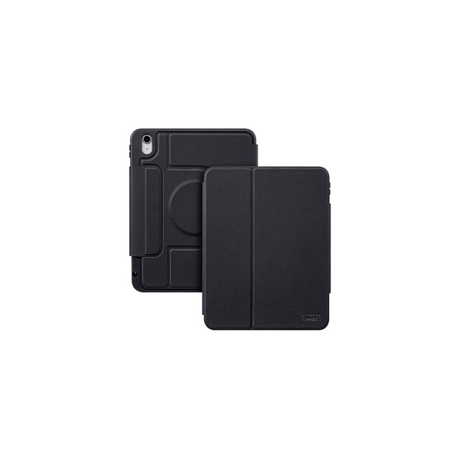 The Laut PRESTIGE FOLIO MG Black Magspin case for iPad 10.9" (10th Gen 2022 / 11th Gen 2025) is a premium tablet folio designed to offer both luxury and robust protection. Crafted from luxurious Saffiano faux leather, this case boasts a sophisticated look and durable feel.