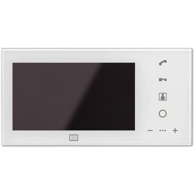 The ACO INS-MP7 WH is a hands-free digital inside unit designed for seamless video and audio communication. With a modern and sleek design, this unit features a glass front panel that adds a touch of elegance to any environment.
