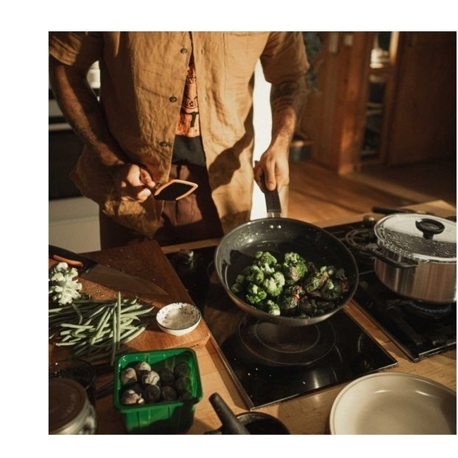 Material and Construction: Crafted from 90% recycled stainless steel, this frying pan is a sustainable choice. It features a unique plastic-free ceramic coating known as Ceratec, which provides exceptional non-stick properties. This ensures your meals slide off effortlessly, promoting healthier cooking without excessive oils or fats.