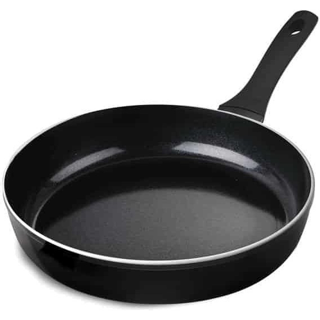 This frying pan is versatile enough to be used on gas, electric, ceramic, and induction stoves. Its ceramic coating allows for healthy cooking with minimal fat and makes cleanup effortless.