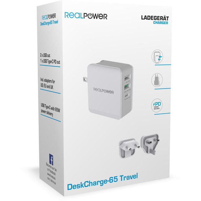 Φορτιστής Πρίζας RealPower DeskCharge-65 Travel Wall Charger White