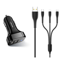 Φορτιστής Αυτοκινήτου Usams C13 & καλώδιο 3 σε 1, 2x USB, 2.1A, μαύρο