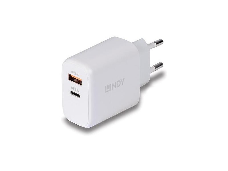 Φορτιστής Πρίζας Lindy USB Typ A+C GaN Charger 65W, White