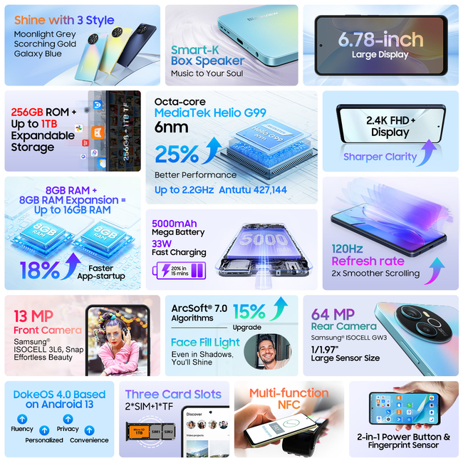 - 13 MP (Samsung ISOCELL 3L6), 64 MP