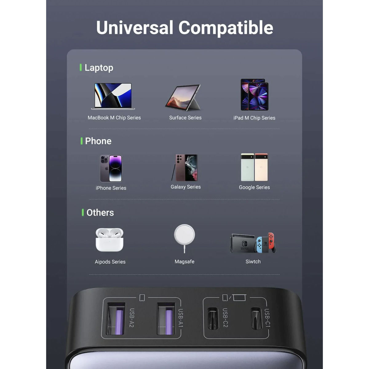 UGREEN Charger Ugreen Nexode CD327 2x USB-C 2x USB-A GaN 65W Grey 90747B