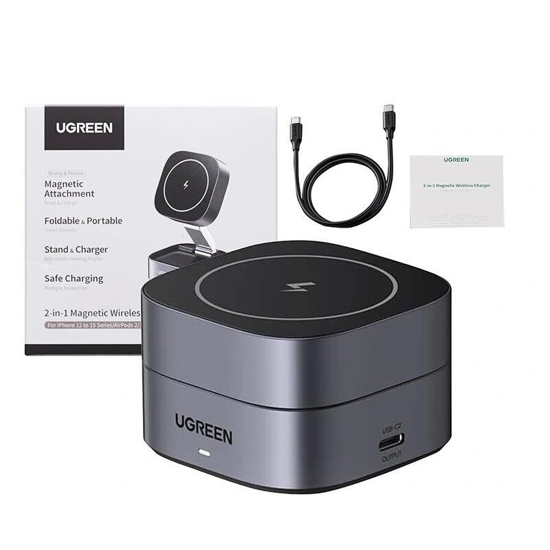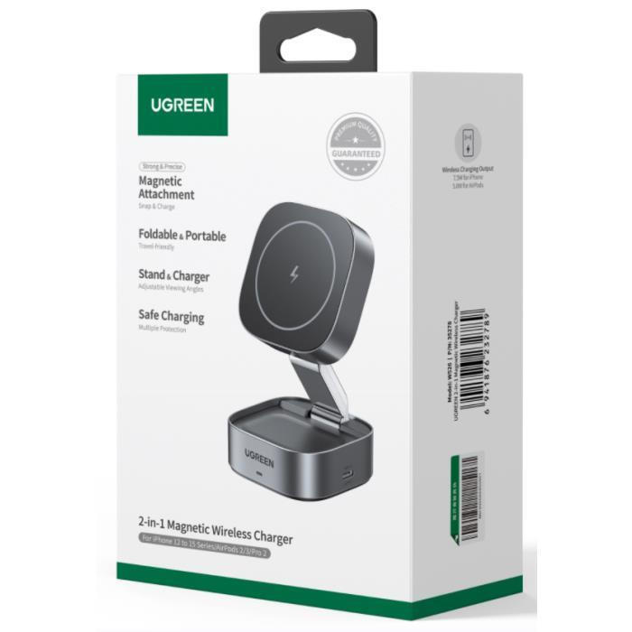 UGREEN Wireless Charger 2 in 1 for iPhone AirPods W256 20W Black with USB C to USB C Cable 1m 35278