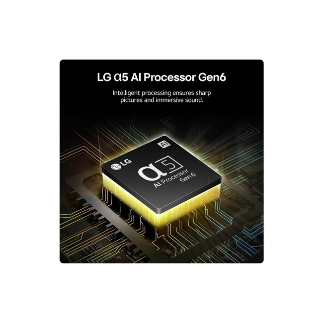 Powered by the advanced Alpha5 Gen6 AI Quad-Core processor, it enhances performance and optimizes picture quality. This model also supports both HDR10 and HLG formats, allowing for richer colors and deeper contrasts.