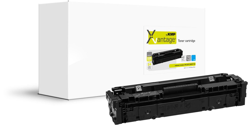 The KMP XVantage Toner HP207X (W2211X) in cyan is a remanufactured compatible toner cartridge, designed as a cost-effective and eco-friendly alternative for HP Color LaserJet Pro printers. With a print yield of approximately 2,450 pages at 5% coverage, it matches the original HP 207X toner cartridge’s capacity.