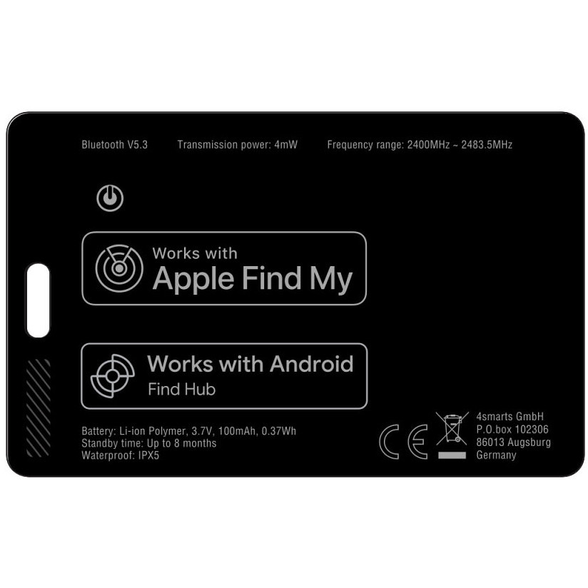 The 4smarts Standort-Finder SkyTag Card Duos ReCharge black is a revolutionary Bluetooth location and tracking device, tailored specifically for Apple devices. With its sleek credit-card-style design, it combines practicality and advanced tracking features.
