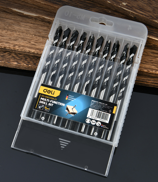 Σετ τρυπάνια της DELI κατάλληλα για χρήση σε επιφάνειες από πέτρα, μέταλλο, ξύλο, μάρμαρο κ.α. Η συσκευασία περιλαμβάνει 10 τρυπάνια.